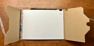 Leporello, Papier 120 gr. Japico, aufgedoppelt, 12 Seiten, ca. 15×15 cm, inklusive Bleistift mit Radierkappe